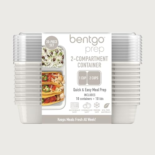 Bentgo 20-Piece Lightweight, Durable, Reusable BPA-Free 2-Compartment Containers – Microwave, Freezer, Dishwasher Safe