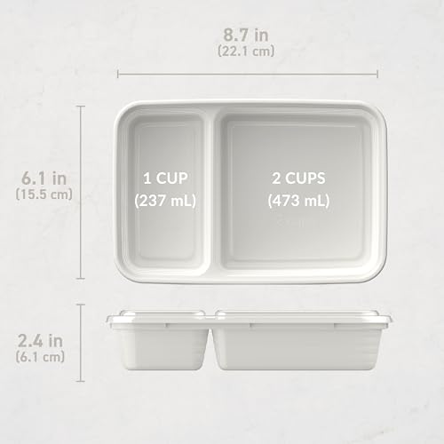 WHAT YOU GET: 10 two-compartment trays, 10 custom-fit lids, meal prep eBook, and caring customer support