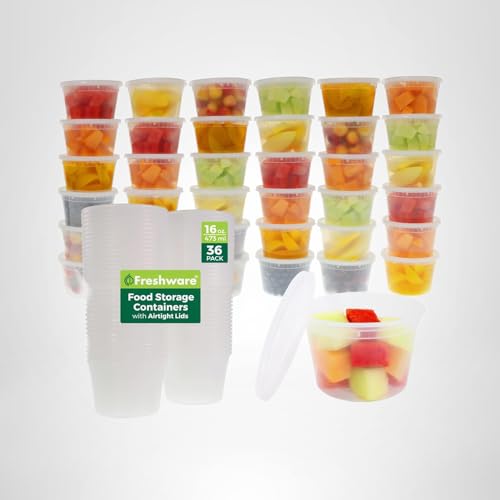 Freshware Food Storage Containers 16 oz Plastic Deli Containers with Lids, Slime, Soup, Meal Prep Containers | BPA Free | Stackable | Leakproof | Microwave/Dishwasher/Freezer Safe