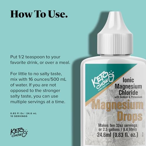 Keto Chow Ionic Magnesium Chloride Supplement Drops | Provides Magnesium, Eletrolytes & Trace Minerals The Body Needs | Sourced from Utah’s Great Salt Lake | On The Go Container