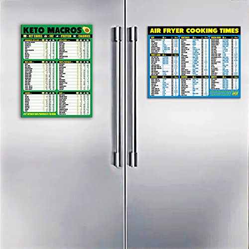 Keto Diet and Air Fryer Cooking Times Cheat Sheet Combination Bundle – Extra Large Easy to Read Cooking Accessory Charts – Quick Reference Guide Magnets for Keto and Airfry Foods – Kitchen Accessories