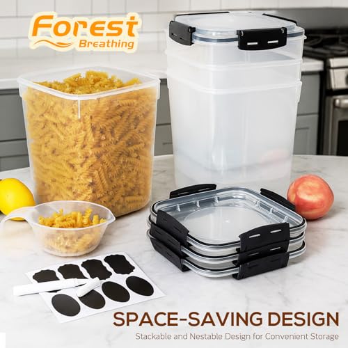 Complete Kitchen Containers Storage Set: Includes 4 large 5.3L/179oz/4.8 quart plastic food storage containers with lids, a measuring scoop, reusable labels&pen, perfect as food organizer for pantry or food storage bins