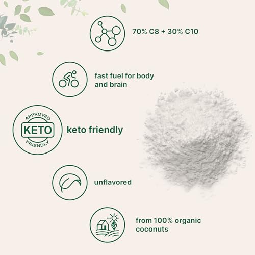 Organic MCT Oil Keto Powder with Prebiotic Fiber (70% C8 and 30% C10 Medium Chain Triglycerides From Organic Coconut), 1 Pound, Premium MCT Oil Powder Organic.