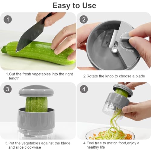 SUREWIN 3 in 1 Vegetable Spiralizer Slicer, Adjustable Zucchini Carrot Noodle Maker, Cucumber Spiral Cutter, Easy to Use Kitchen Tool