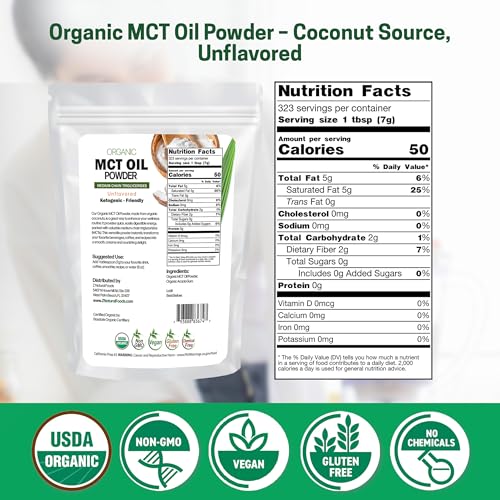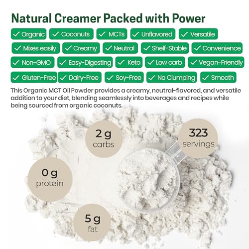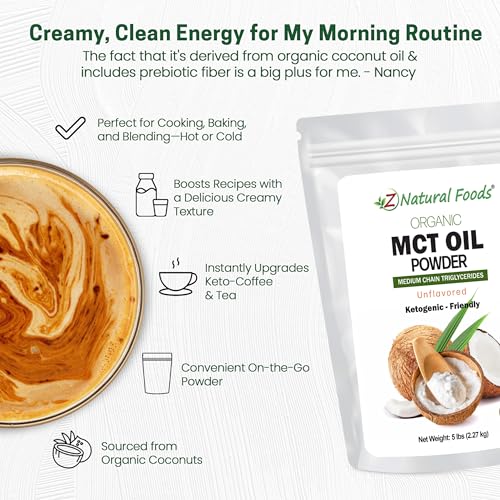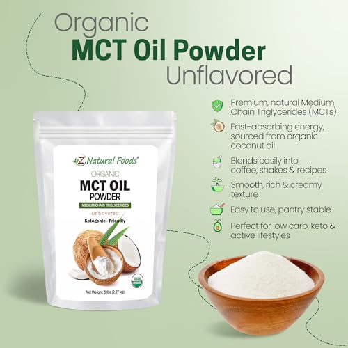 Z Natural Foods Organic MCT Oil Powder | From Coconut Oil with Prebiotic Fiber | C8 and C10 | Natural Plant Based Vegan Creamer For Tea, Coffee, Shakes & Smoothies | Keto & Paleo Friendly Superfood Powder | Non GMO & Gluten Free